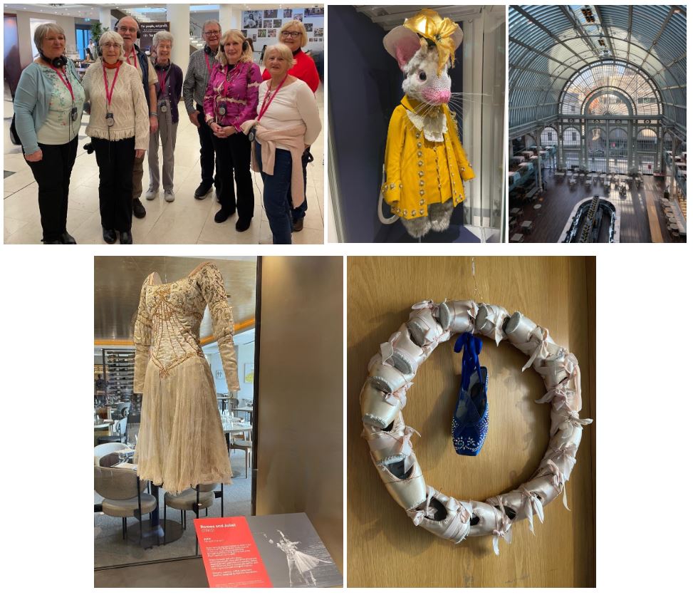 We went to London by coach for a guided tour of the Royal Opera House. We were greeted by our enthusiastic guide Tom - an actor - who was a mine of information. We learnt about the two previous structures which were destroyed by fire and the subsequent building, which was renovated and raised in the 1990s. We saw models of sets, the theatre, the Royal Box (and Royal toilet!), costumes, including those worn by Rudolph Nureyev and Margot Fonteyn, well-worn ballet shoes and much more. There were also auditions happening for the Royal Ballet School. It was a great tour and we would recommend it to other members.